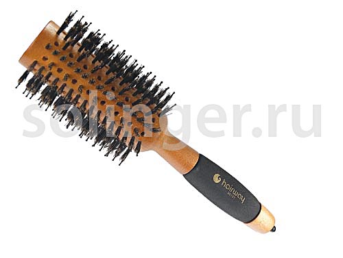 Термобрашинг на деревянной основе комбинированный. С натуральной щетиной и нейлоновыми штифтами.Продувная втулка.Полимерная ручка.Разделитель прядей.Нейлоновые штифты прочесывают, а натуральная щетина сглаживает и придает блеск волосам.