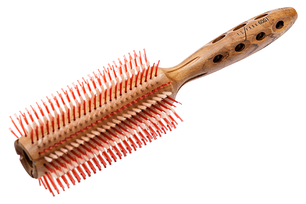 Термобрашинг для волос SUPER-G из лёгкого натурального дерева с комбинированной щетиной из натурального кабаньего ворса высшего качества с полиамидовыми штырьками. Натуральная щетина обеспечивает отличный захват волос, гладкое выпрямление и блеск волос после укладки. Двухярусные штырьки из полиамида с закруглёнными кончиками обеспечивают надёжный контроль и вторым ярусом работают вместе с натуральной щетиной. Эргономичная форма ручки в форме шестигранника с отверстиями помогает удобно располагать и контролировать брашинг при выполнении разных типов укладки. Насечки на шейке брашинга (между щетиной и ручкой) обеспечивают лёгкость вращения брашинга в руке и помогают лучше его удерживать.