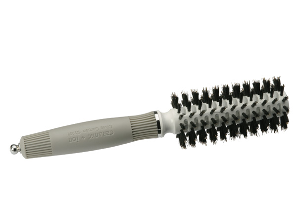 Брашинг с керамической поверхностью, обогащённой отрицательно заряженными ионами, с натуральной щетиной дикого кабана. Удобная прорезиненная ручка оснащена специальным хвостиком для разделения и выделения прядей. Сквозные отверстия в керамическом корпусе щётки продуваются горячим воздухом фена и обеспечивают быстрое высыхание волос и прочность завитка. Диаметр 22 см.