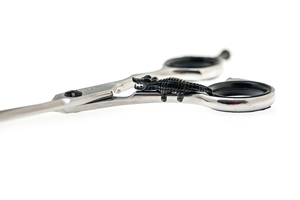 Декоративное украшение для ножниц «крокодил». Фигурка крокодила изготовлена из металла и оснащена магнитным креплением, которое надёжно удерживает фигурку на ручке ножниц во время работы.