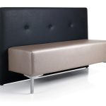 Двухместный диван для ожидания. Диван оснащен задней панелью с декоративной отделкой и алюминиевыми ножками. Обивка — искусственная кожа высшего качества.