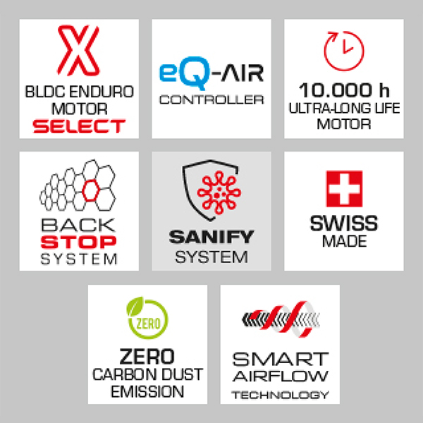 Необыкновенно мощный и долговечный мотор BLDC-ENDURO-X SELECT с бесщеточным двигателем с продолжительностью жизни до 10 000 часов – в 5 раз больше чем у АС-моторов.