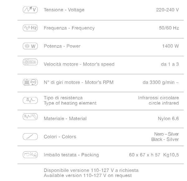 Климазон используется для ускорения процесса окраски, завивки и лечения волос. Климазон оснащён таймером, терморегулятором, 5 неподвижными инфракрасными лампами которые включаются по отдельности, вентиляцией, электронной панелью управления. В климазоне реализована возможность автоматической работы с 11 предустановленными программами, которые можно полностью редактировать и модифицировать. При заказе изделия на кронштейне: рекомендованная высота крепления — 190 см (от пола).