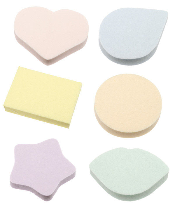 Комплект цветных поролоновых губок разной формы для снятия/нанесения макияжа, 6 штук.