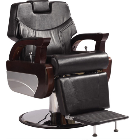Барберское кресло «Брендон», подлокотники выполнены под дерево, что придаст солидности Вашему салону и отлично впишется в общий интерьер салона. Модель имеет усиленную гидравлику, широкое посадочное место с такой же спинкой и кожаные вставки на подлокотниках. Сидеть в нем достаточно удобно. Спинка откидывается синхронно с поднятием подножки.