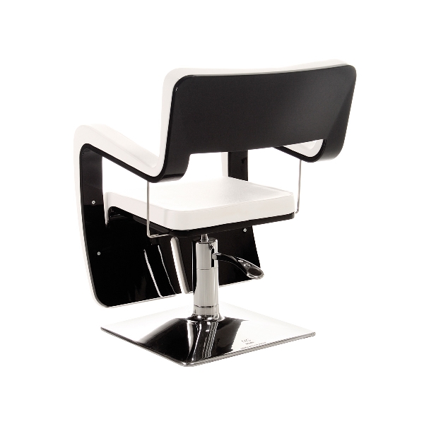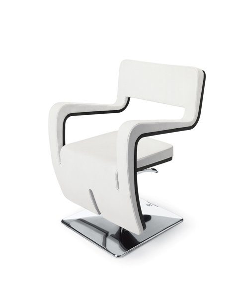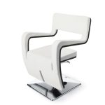 Дизайнерское парикмахерское кресло. Кресло для клиента комплектуется металлическим хромированным квадратным основанием и гидроподъемником с блокировкой. Кресло оснащено черным лакированным каркасом и комфортными подлокотниками. Каркас кресла выполнен из дерева. Обивка — искусственная кожа высшего качества.