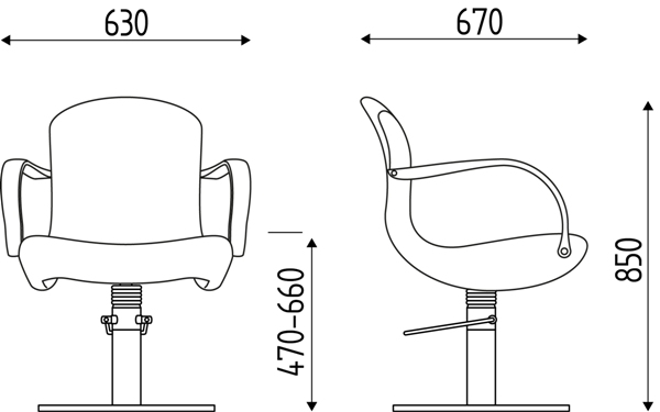 Кресло для клиента, каркас кресла выполнен из высококачественного полиуретана. Кресло оснащено литыми алюминиевыми подлокотниками, отполированными и хромированными. Обивка — искусственная кожа высшего качества.