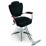 Дизайнерское парикмахерское кресло. Кресло для клиента комплектуется металлическим хромированным основанием в форме пятилучья и гидроподъемником с блокировкой. Кресло оснащено комфортными алюминиевыми подлокотниками с накладками из дерева. Обивка — искусственная кожа высшего качества.