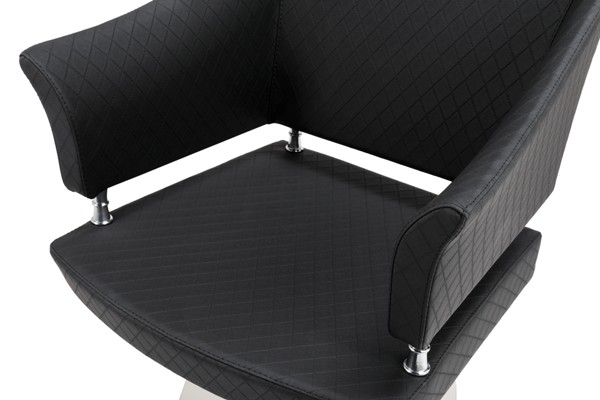 Элегантное кресло для клиента, каркас кресла изготовлен из многослойной фанеры, выполнен из высококачественного полиуретана. Кресло оснащено мягкими подлокотниками и металлическими вставками между сидением и спинкой. Обивка — искусственная кожа высшего качества. Данное кресло идеально подходит для оснащения салона красоты в классическом стиле.