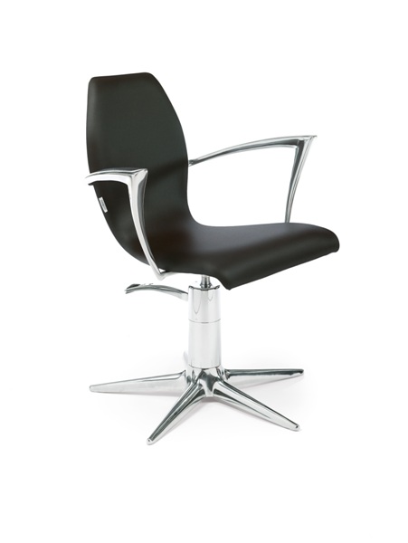 Кресло для клиента комплектуется металлическим основанием. Кресло оснащено металлическими подлокотниками. Обивка — искусственная кожа высшего качества.