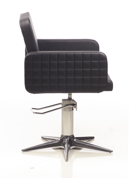 Кресло для клиента комплектуется металлическим основанием и гидроподъемником с блокировкой. Кресло оснащено комфортными мягкими подлокотниками. Внешняя часть подлокотников и внешняя часть спинки выполнена в кожзаме черного цвета (NERO CPT — стеганный). Обивка — искусственная кожа высшего качества.
