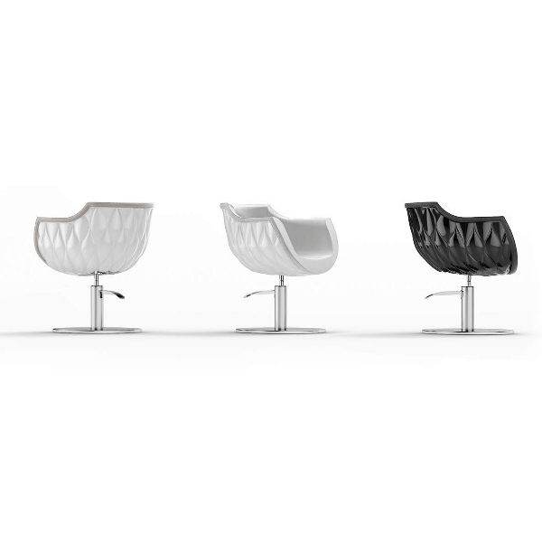 Дизайнерское парикмахерское кресло. Кресло для клиента комплектуется дисковым основанием из нержавеющей стали и гидроподъемником с блокировкой. Кресло оснащено декоративным лакированным каркасом и комфортными подлокотниками. Обивка — искусственная кожа высшего качества.