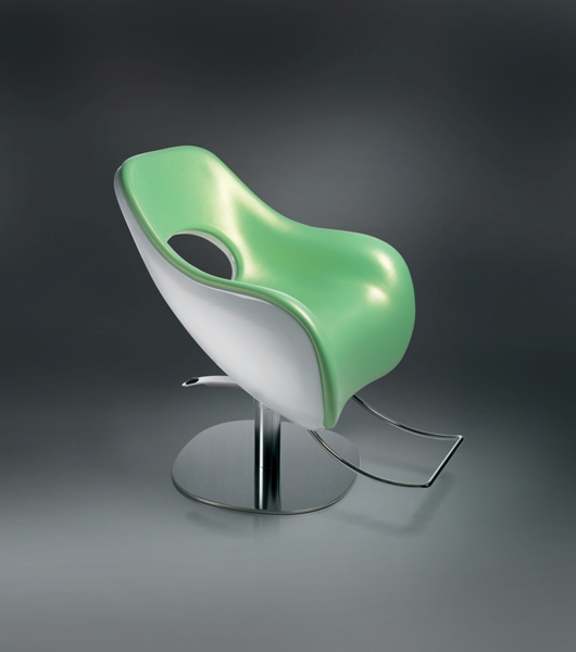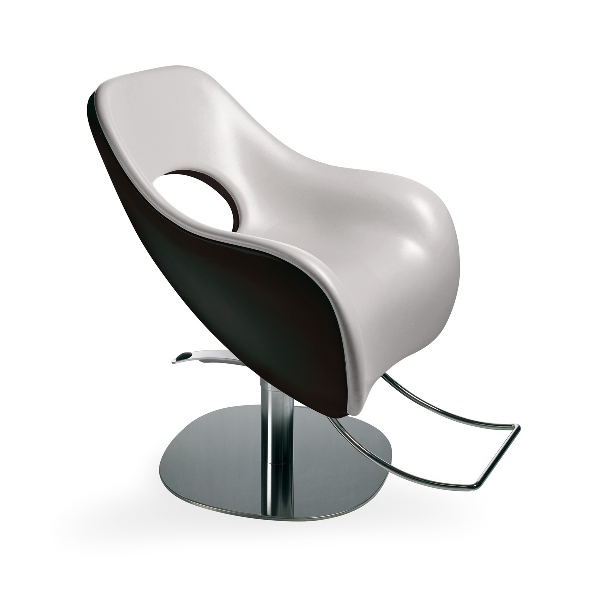 Дизайнерское парикмахерское кресло. Кресло для клиента комплектуется дисковым основанием из нержавеющей стали и гидроподъемником с блокировкой. Кресло оснащено белым лакированным каркасом и комфортными подлокотниками. Обивка — искусственная кожа высшего качества (только в этих цветах):