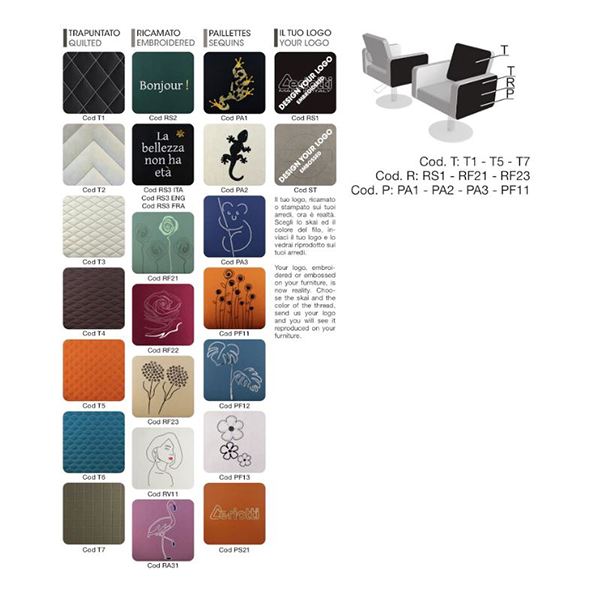 T — Стеганая отделка — область применения отделки для каждой модели индивидуальна (место расположения — по запросу) (T8 — T9)