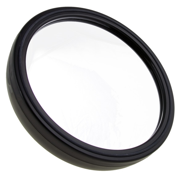 Круглое чёрное зеркало 22 см с ручкой для демонстрации клиенту стрижки сзади. Заключено в оболочку с прорезиненными краями. Благодаря этому, можно класть зеркало лицевой поверхностью на стол, не боясь царапин и трещин.