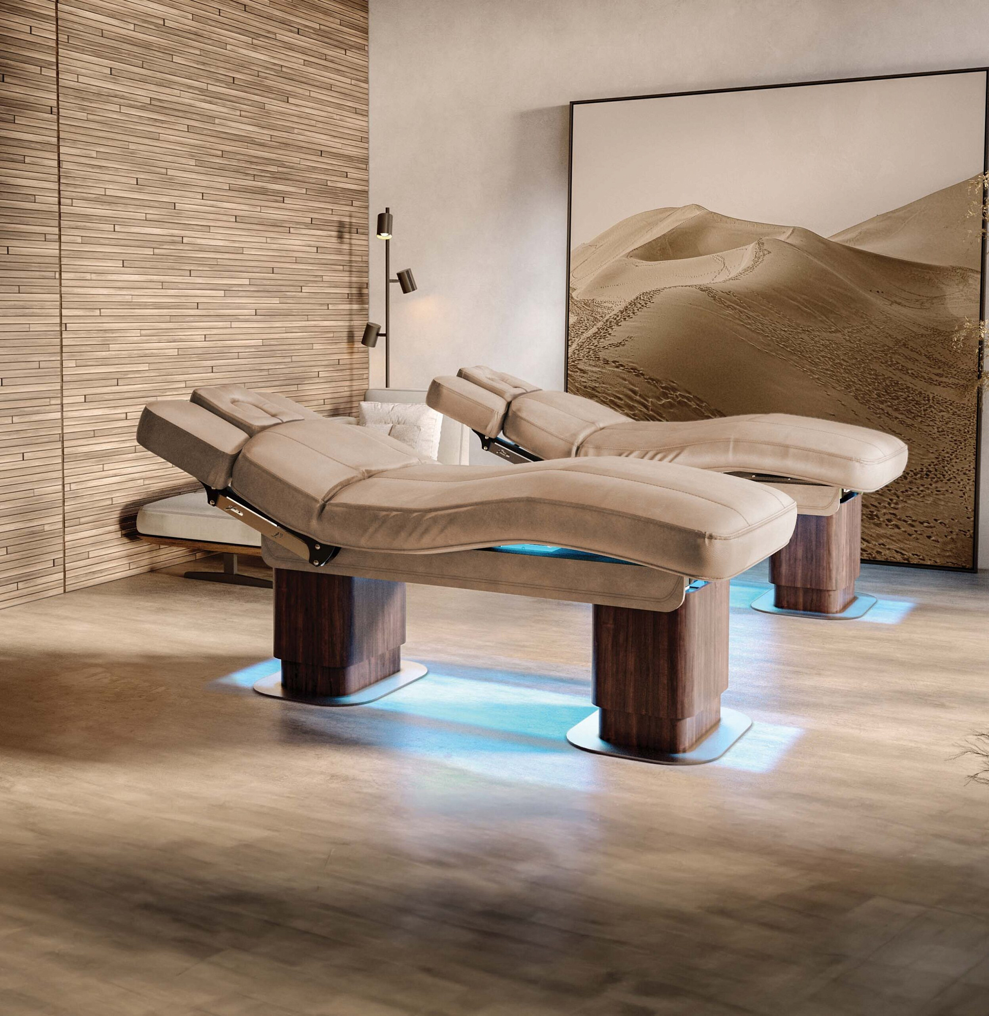 Многофункциональная кушетка MILANO EVO для массажа и SPA процедур для лица и тела, способна обеспечить максимальный комфорт. Кушетка оснащена двумя колоннами из изогнутого дерева со стальным основанием, а также тремя электромоторами, с помощью которых регулируются высота, наклон спинки и сидения (ножной части), регулировки осуществляются за счет ножного пульта управления. В базовой комплектации кушетка оснащена ультракомфортным матрасом с эффектом памяти, что не оставит равнодушным ни одного клиента.