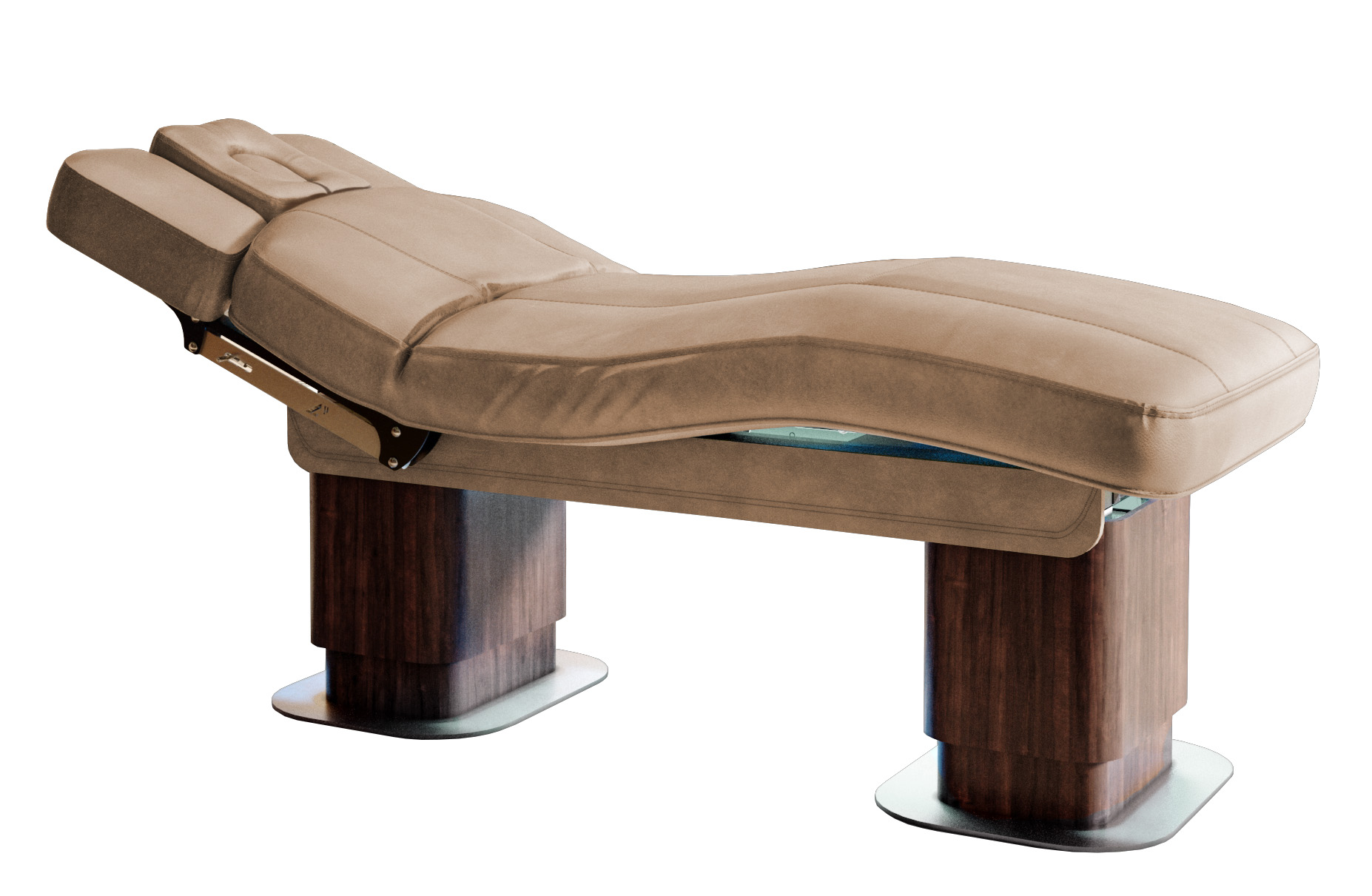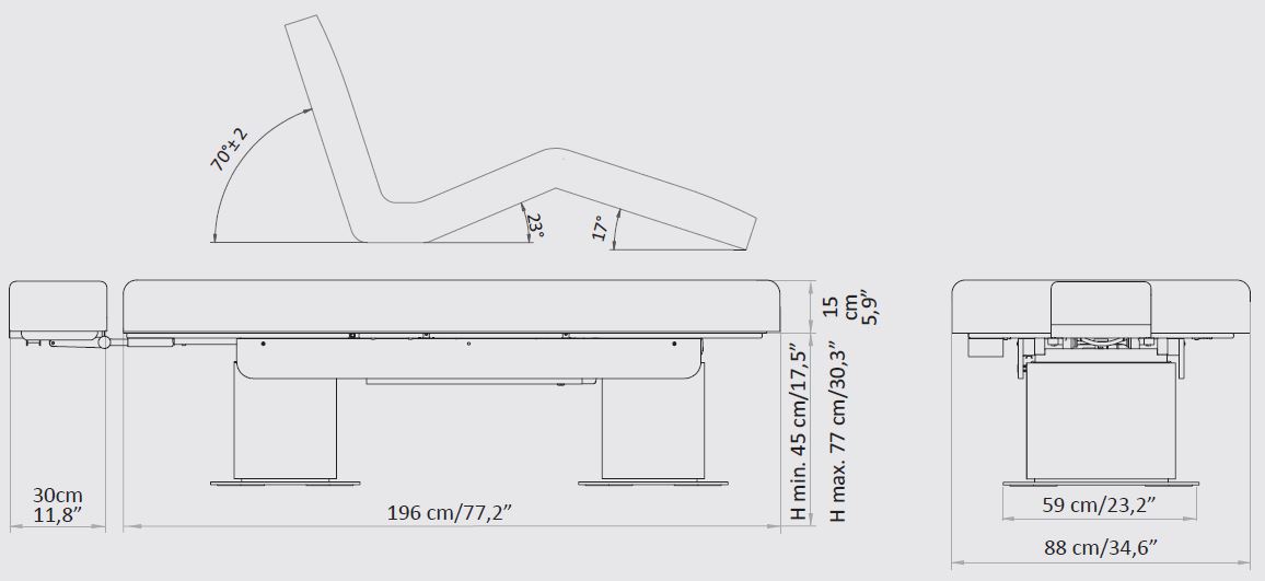 Многофункциональная кушетка MILANO для массажа и SPA процедур для лица и тела, способна обеспечить максимальный комфорт. Кушетка оснащена двумя колоннами из изогнутого дерева со стальным основанием, а также тремя электромоторами, с помощью которых регулируются высота, наклон спинки и сидения (ножной части), регулировки осуществляются за счет ножного пульта управления. В базовой комплектации кушетка оснащена ультракомфортным матрасом с эффектом памяти, что не оставит равнодушным ни одного клиента. Комплектуется американским подголовником с отверстием для лица. Основание кушетки изготовлено из натурального дерева.