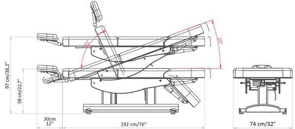 Универсальная многофункциональная кушетка VERONA для массажа и SPA процедур для лица и тела, способна обеспечить максимальный комфорт. Кушетка оснащена четырьмя электромоторами, с помощью которых регулируются высота, наклон спинки, ножной части, угол наклона кресла (тренделенбург), регулировки осуществляются за счет ручного пульта управления. Система полной электрической регулировки делает кушетку VERONA идеальным решением для профессионалов, стремящихся создать комфортные условия работы. Наличие четырех электроприводов позволит подобрать наиболее удобное положение и высоту, позволяя клиенту садиться в кушетку и вставать с нее без особых усилий.