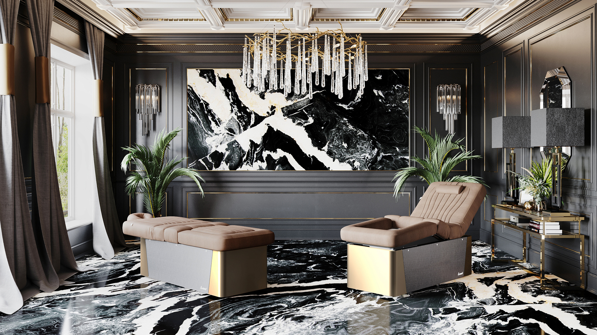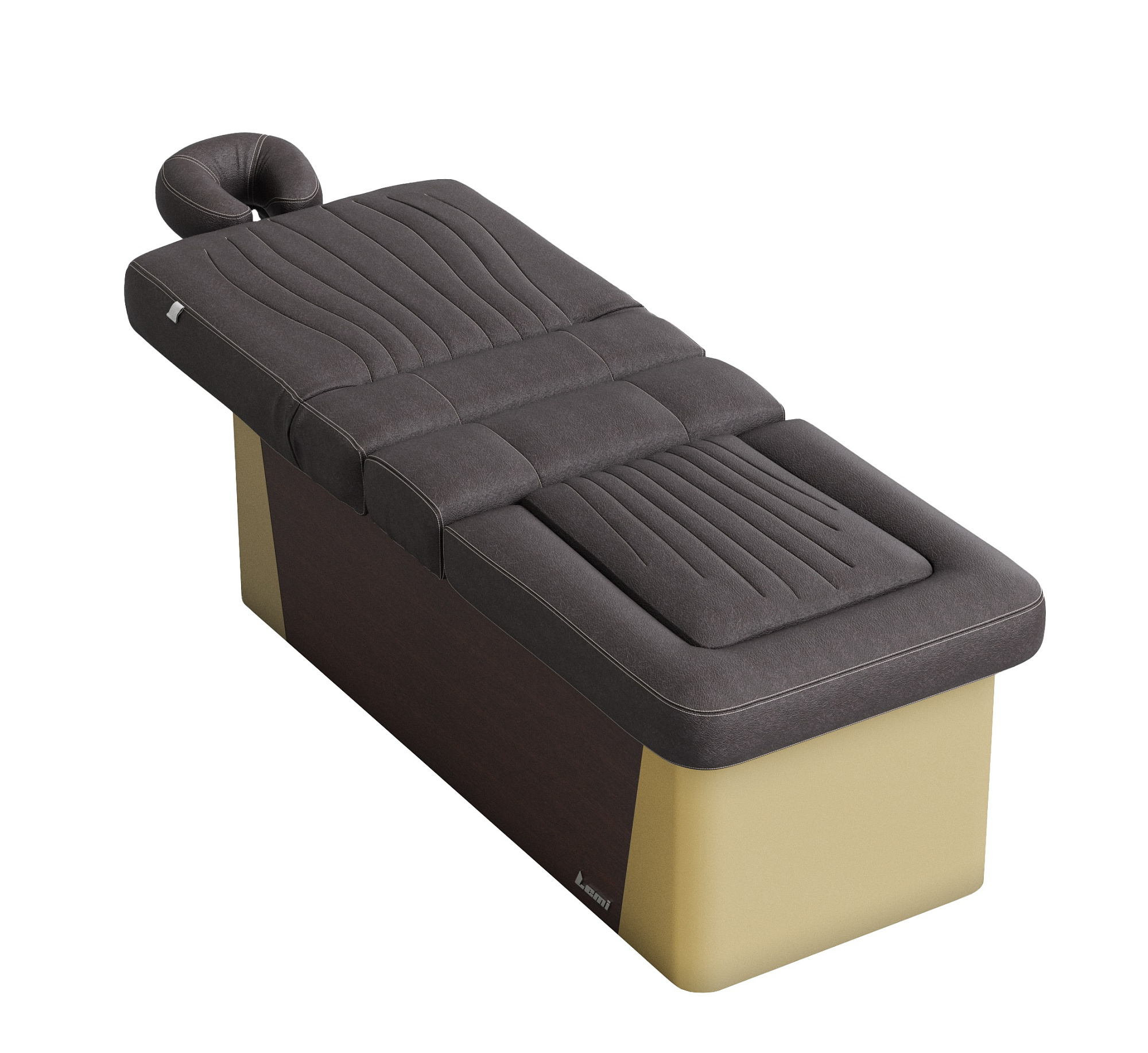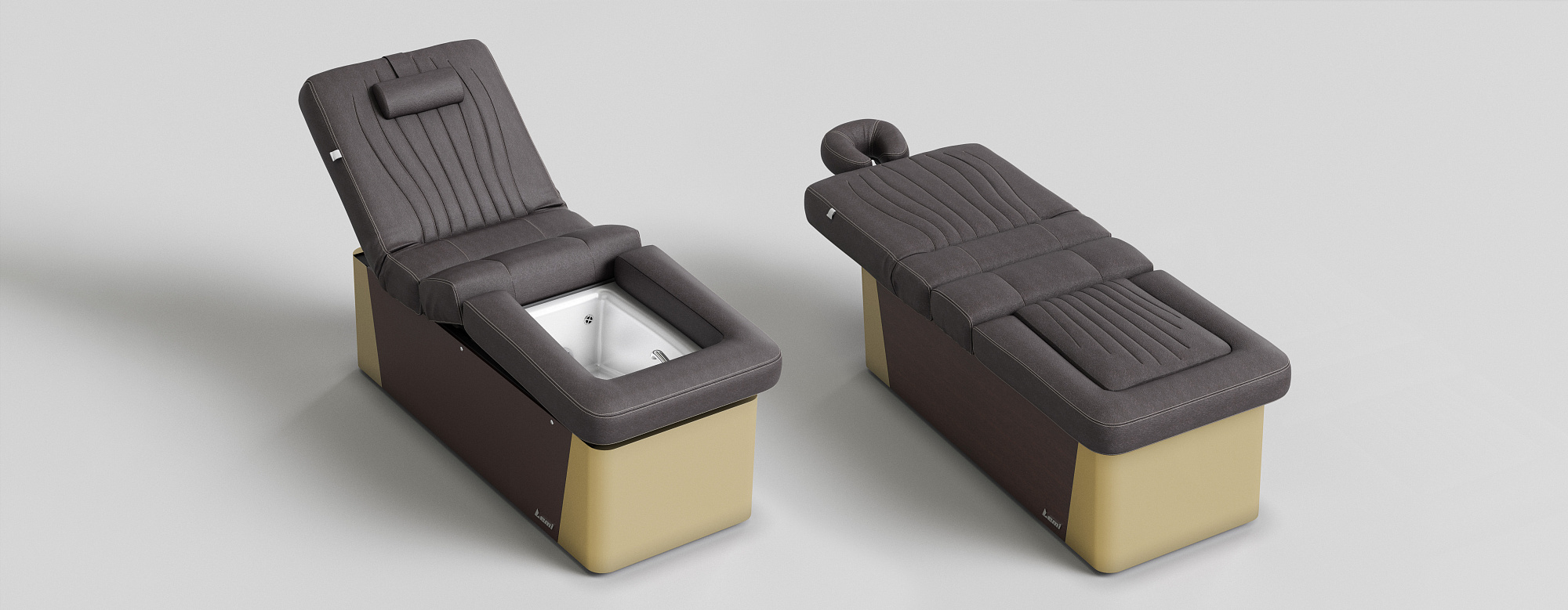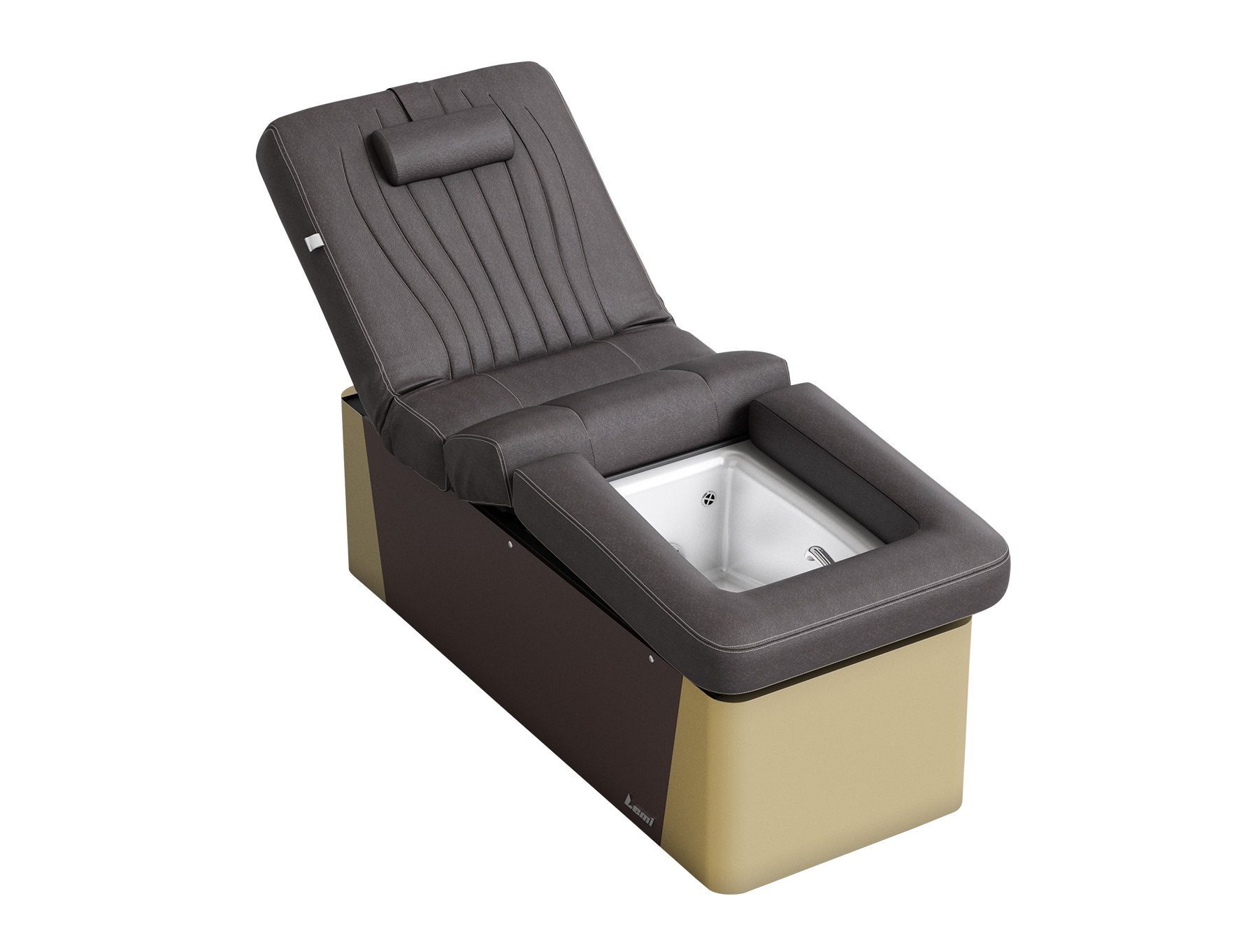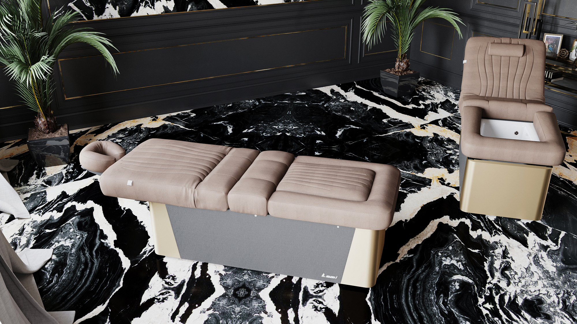 Универсальная многофункциональная кушетка AMALFI для массажа и педикюра, способна обеспечить максимальный комфорт. Кушетка оснащена тремя электромоторами, с помощью которых регулируются высота, наклон спинки и ножной части, регулировки осуществляются за счет беспроводного ножного пульта управления с функцией памяти. Матрас AMALFI отличается новым дизайном с элегантной строчкой, создающей текстуру “ракушки”, которая обеспечивает движение, сохраняя при этом полный комфорт, отличающий продукцию LEMI. Матрас кушетки оснащен съемной частью в ножной секции, которая закрывает нижнюю ванну. Многофункциональная кушетка оснащена интегрированной гидромассажной ванной для проведения педикюра. Педикюрная ванна оснащена инновационной гидромассажной системой без труб, которая гарантирует максимальную гигиену и простоту очистки. Каркас кушетки выполнен из натурального дерева с металлическими вставками розового или золотого цвета.