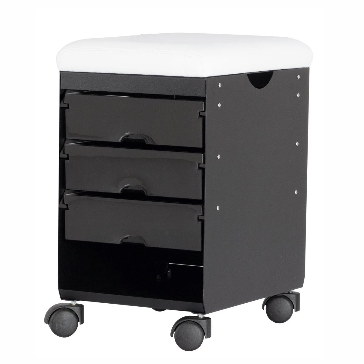 Стойка маникюрная на колесиках. Стойка маникюрная оснащена тремя выдвижными ящиками закрытого типа. Каркас стойки выполнен из металла, мягкий элемент сиденья выполнен из искусственной кожи высшего качества.
