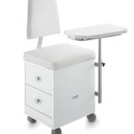 Стойка для экспресс-маникюра. Маникюрная стойка оснащена колесиками для удобства перемещения, специальной регулируемой пластиковой полочкой (рабочая поверхность) и двумя выдвижными ящиками. Каркас стойки выполнен из дерева, мягкие элементы сиденья и спинки выполнены из искусственной кожи высшего качества.