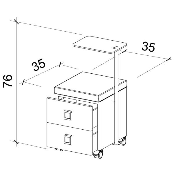 Стойка для экспресс-маникюра. Маникюрная стойка оснащена колесиками для удобства перемещения, специальную регулируемую полочку (рабочая поверхность) и двумя выдвижными ящиками. Каркас стойки выполнен из дерева. Варианты цвета каркаса стойки на выбор: белый, черный или натуральное дерево. Обивка — искусственная кожа высшего качества.