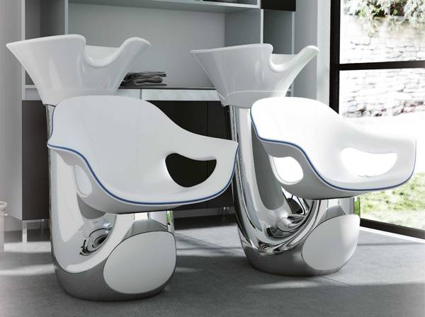Мойка парикмахерская с креслом. Каркас мойки выполнен из алюминия с черной или белой пластиковой вставкой. Кресло оснащено мягкими и комфортными подлокотниками. Мойка комплектуется глубокой керамической раковиной с регулировкой угла наклона и комплектом смесителя. Обивка — искусственная кожа высшего качества.