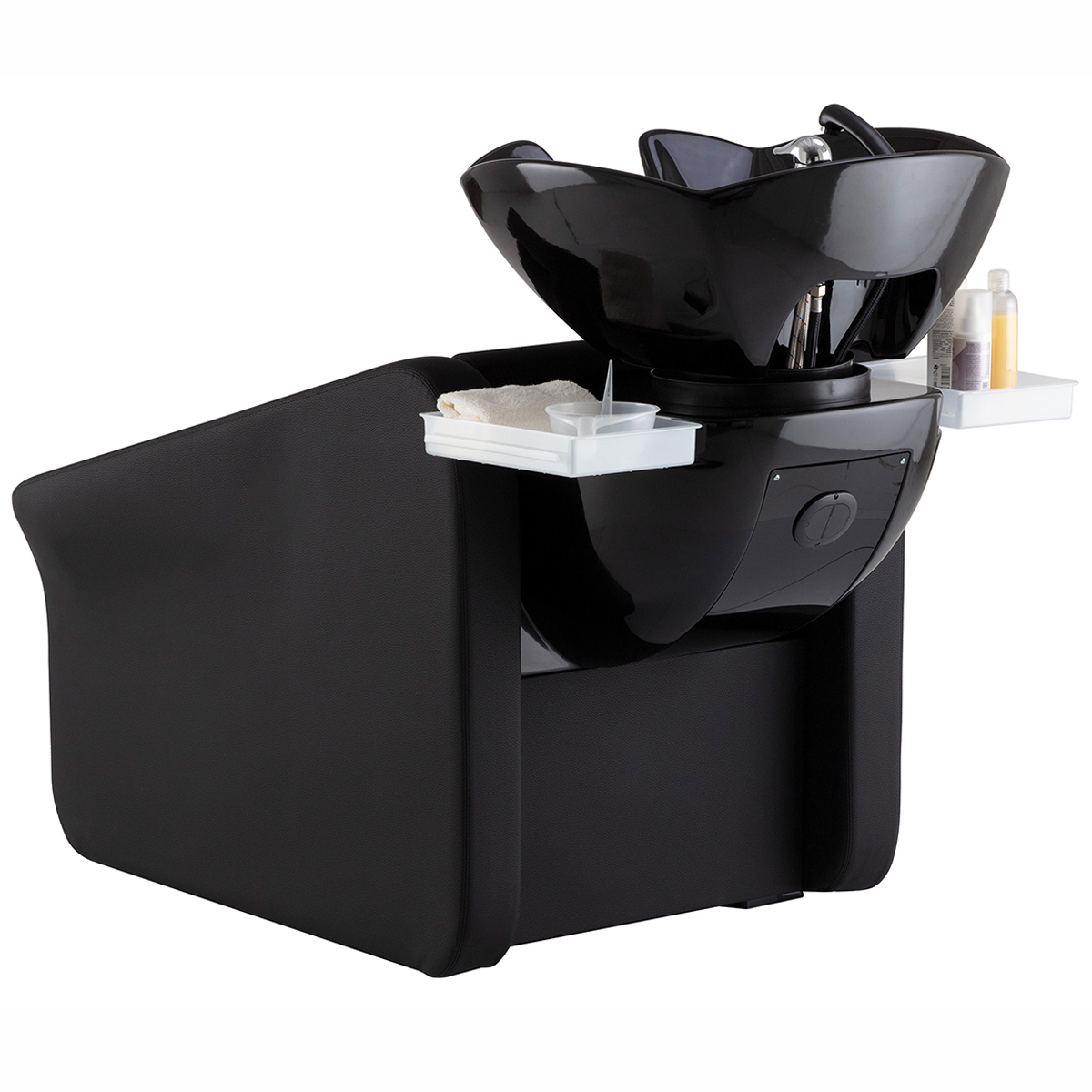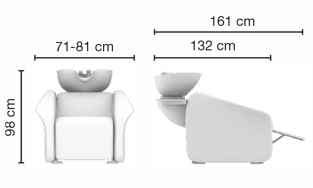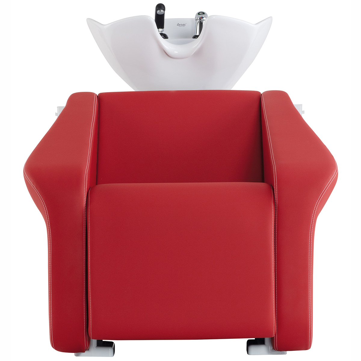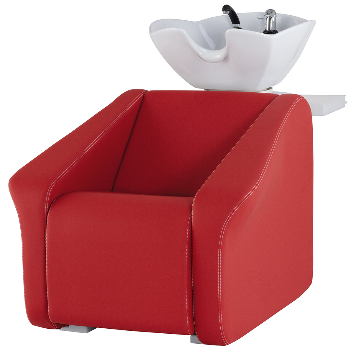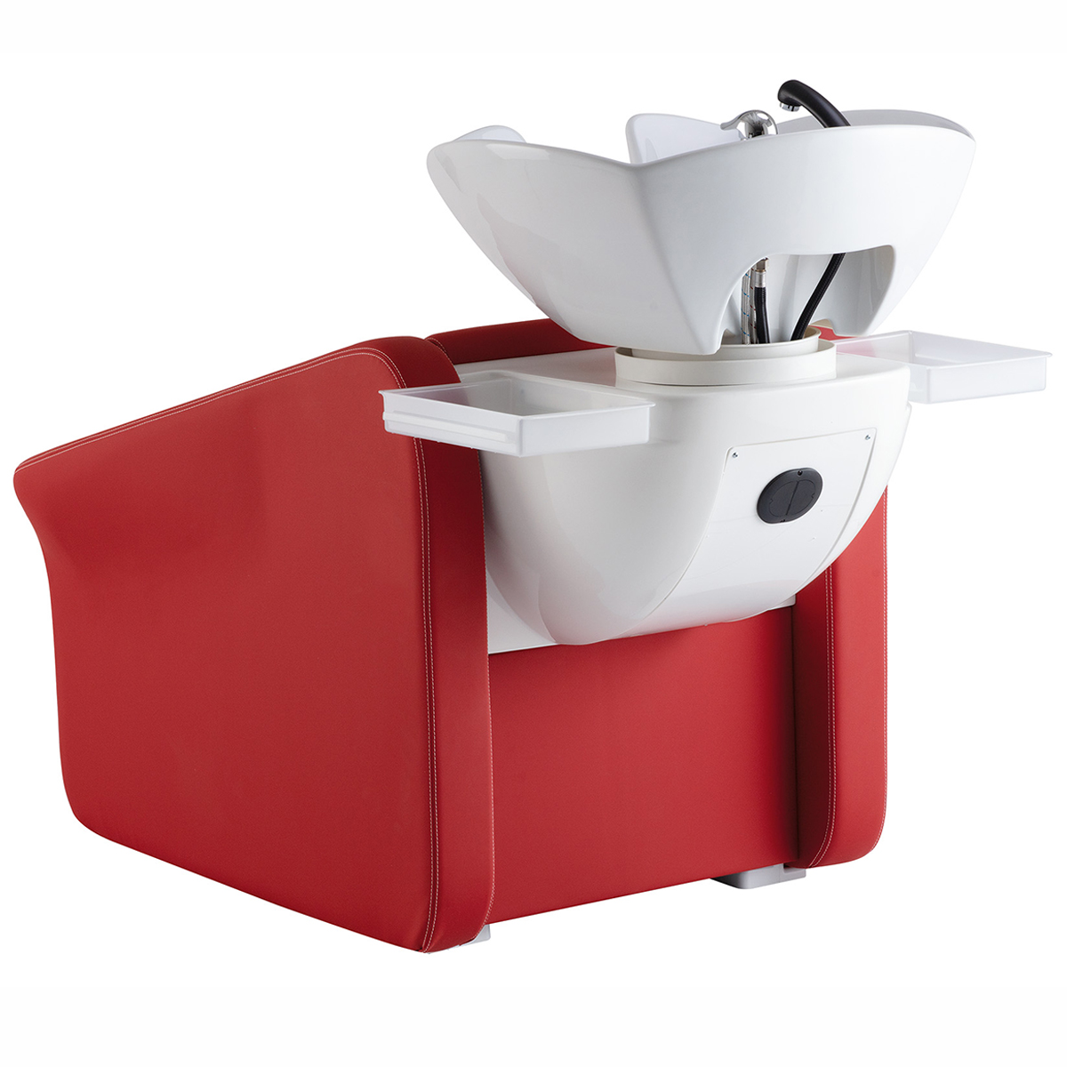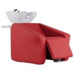 Мойка парикмахерская. Каркас, сиденье и спинка выполнены из высококачественного вспененного полиуретана с вставками из дерева и металла. Мойка комплектуется глубокой керамической раковиной с регулировкой угла наклона и комплектом смесителя. Обивка — искусственная кожа высшего качества.