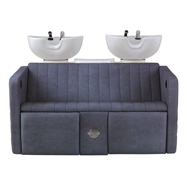 Широкая, комфортная, двойная парикмахерская мойка. Каркас, сиденье и спинка выполнены из высококачественного вспененного полиуретана с вставками из дерева и металла. Мойка оснащена пластиковым каркасом с нишами для хранения инструментов и аксессуаров, а также мягкими и комфортными подлокотниками. Мойка комплектуется глубокими керамическими раковинами с регулировкой угла наклона и комплектами смесителей. Обивка — искусственная кожа высшего качества.