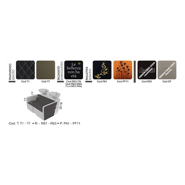 T — Стеганая отделка — область применения отделки для каждой модели индивидуальна (место расположения — по запросу) (T9)