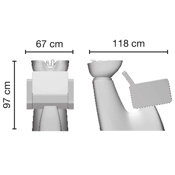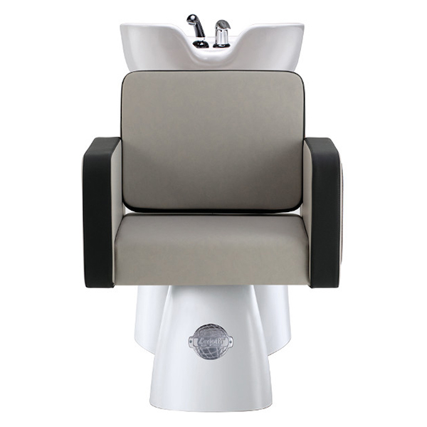 Мойка парикмахерская с креслом. Кресло выполнено из высококачественного вспененного полиуретана со вставками из фанеры. Каркас мойки выполнен из пластика. Кресло оснащено мягкими и комфортными подлокотниками. Мойка комплектуется глубокой керамической раковиной с регулировкой угла наклона и комплектом смесителя. Обивка — искусственная кожа высшего качества.