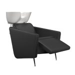 Парикмахерская мойка. Мойка оснащена металлическим каркасом черного цвета, мягкими и комфортными подлокотниками, ножками из полированного алюминия и электрической подножкой, что позволяет клиенту принять положение «полулежа» обеспечивая максимальный комфорт. Также мойка оснащена системой воздушного массажа AIR-SHIATSU. Мойка комплектуется глубокой керамической раковиной с регулировкой угла наклона и комплектом смесителя. Обивка — искусственная кожа высшего качества.