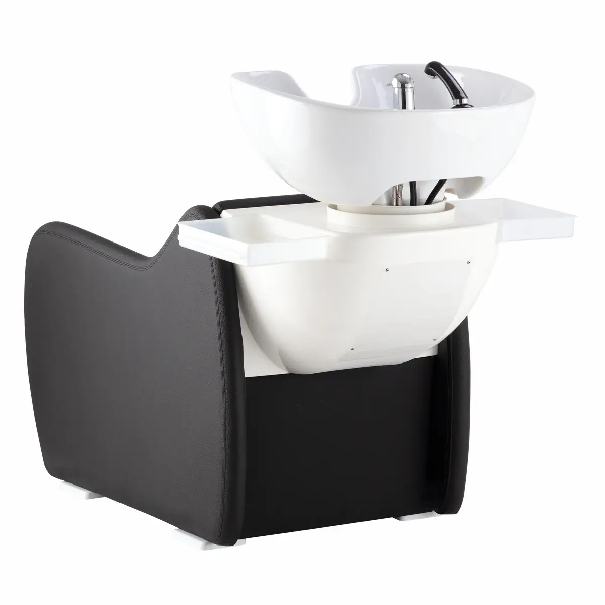 Мойка парикмахерская. Каркас, сиденье и спинка выполнены из высококачественного вспененного полиуретана с вставками из дерева и металла. Кресло оснащено мягкими и комфортными подлокотниками. Мойка оснащена навесными полками для хранения инструментов. Мойка комплектуется глубокой керамической раковиной с регулировкой угла наклона и комплектом смесителя. Обивка — искусственная кожа высшего качества.