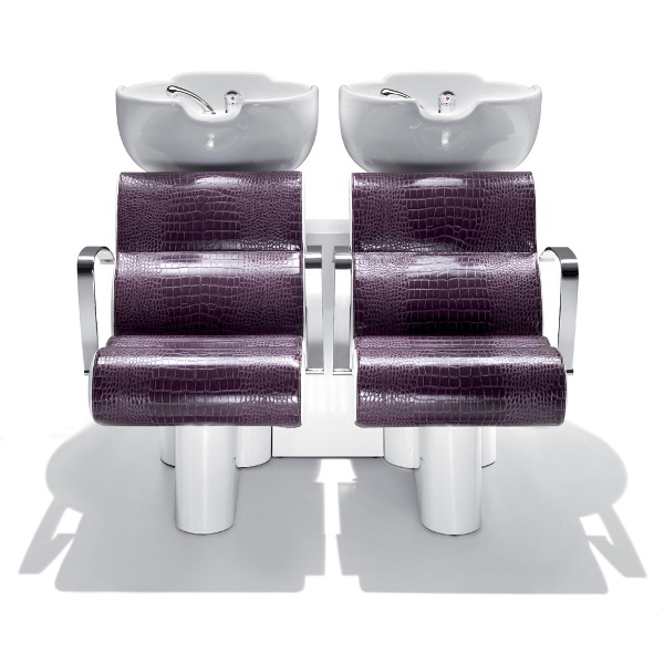 Мойка с каркасом из оцинкованной стали с порошковым покрытием в белом или темно-сером цвете и креслом для клиента. Каркас кресла изготовлен из многослойной фанеры, выполнен из высококачественного полиуретана. Кресло оснащено литыми алюминиевыми подлокотниками, отполированными и хромированными. Обивка — искусственная кожа высшего качества. Мойка комплектуется глубокой керамической раковиной с регулировкой угла наклона и комплектом смесителя.