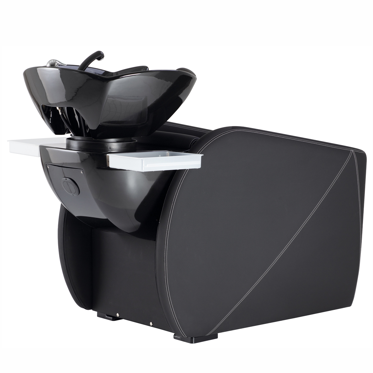 Мойка парикмахерская оригинальной формы. Каркас, сиденье и спинка выполнены из высококачественного вспененного полиуретана с вставками из дерева и металла. Кресло оснащено мягкими и комфортными подлокотниками. Мойка оснащена боковыми навесными полками для хранения инструментов. Мойка комплектуется глубокой керамической раковиной с регулировкой угла наклона и комплектом смесителя. Обивка — искусственная кожа высшего качества.