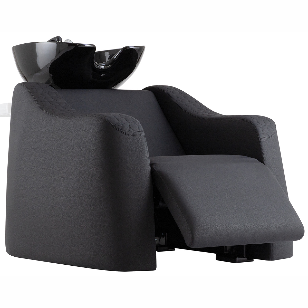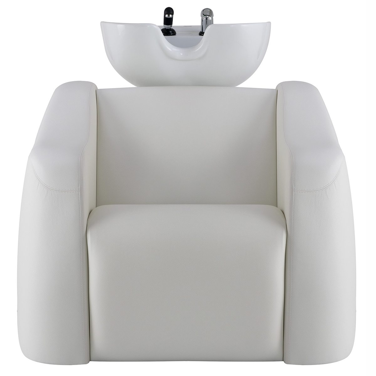 Мойка парикмахерская. Каркас, сиденье и спинка выполнены из высококачественного вспененного полиуретана с вставками из дерева и металла. Мойка комплектуется глубокой керамической раковиной с регулировкой угла наклона и комплектом смесителя. Обивка — искусственная кожа высшего качества.