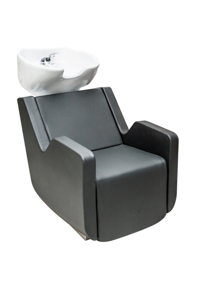 Парикмахерская мойка. Мойка оснащена мягкими и комфортными подлокотниками. Эргономика посадочного места позволяет клиенту принять положение «полулежа» обеспечивая максимальный комфорт. Мойка комплектуется глубокой округлой керамической раковиной с регулировкой угла наклона и комплектом смесителя. Обивка — искусственная кожа высшего качества.