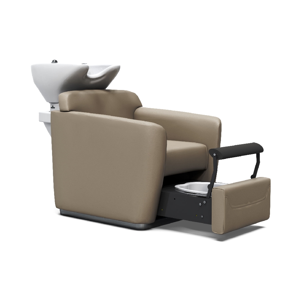 Эргономичная мойка, разработана специально для максимального комфорта клиента. Она создана с учетом передовых технологий, форма каркаса выполнена из высококачественного полиуретана. Кресло оснащено мягкими и комфортными подлокотниками. Обивка — искусственная кожа высшего качества. Мойка комплектуется глубокой керамической раковиной с регулировкой угла наклона и комплектом смесителя с DROP-STOP «каплезащитным» душем в хромированном цвете.