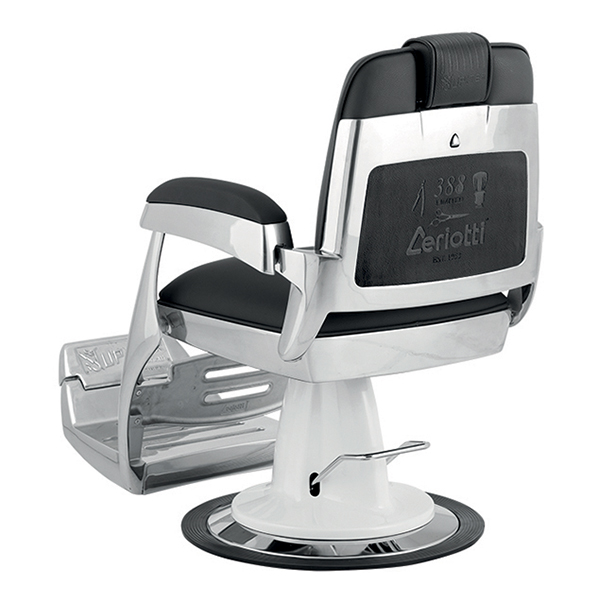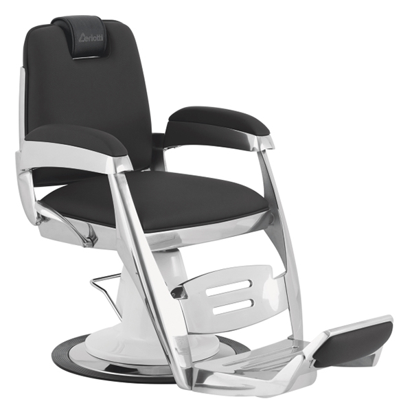 Кресло для клиента – мужское, на гидравлике с блокировкой на диске. Каркас кресла изготовлен из полированного и матового алюминия. Кресло оснащено мягкими и комфортными подлокотниками, регулируемой спинкой и подставкой для ног, при изменении угла наклона спинка и подножка регулируются синхронно, а также кресло имеет регулируемый по высоте подголовник. Обивка — искусственная кожа высшего качества.