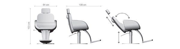 Кресло для клиента – мужское, на гидравлике с блокировкой на диске. Каркас кресла выполнен из высококачественного пенополиуретана с деревянными вставками. Кресло оснащено мягкими и комфортными подлокотниками, подножкой, регулируемыми спинкой и подголовником. Обивка — искусственная кожа высшего качества.