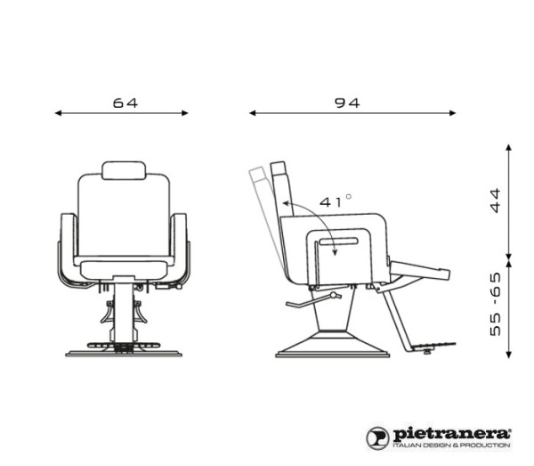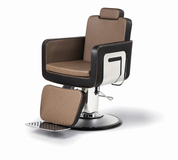 Кресло для клиента – мужское, на гидравлике с блокировкой на диске. Каркас кресла изготовлен из многослойной фанеры. Кресло оснащено мягкими подлокотниками, регулируемой спинкой и подставкой для ног, также кресло имеет регулируемый по высоте подголовник. Обивка — искусственная кожа высшего качества.