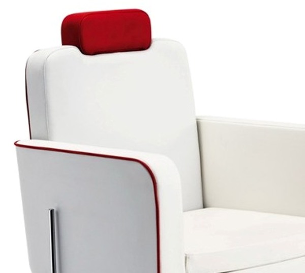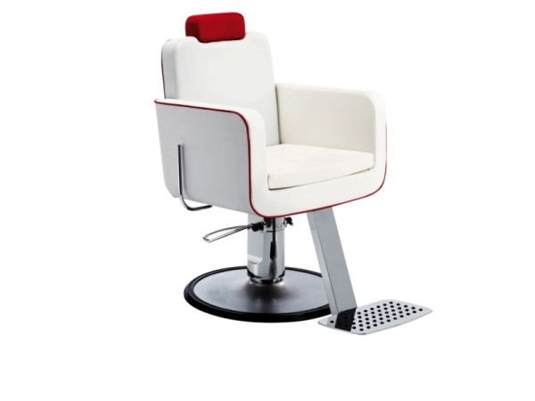 Кресло для клиента – мужское, на гидравлике с блокировкой на диске. Каркас кресла изготовлен из многослойной фанеры. Кресло оснащено мягкими подлокотниками, регулируемой спинкой и подставкой для ног, также кресло имеет регулируемый по высоте подголовник. Обивка — искусственная кожа высшего качества.