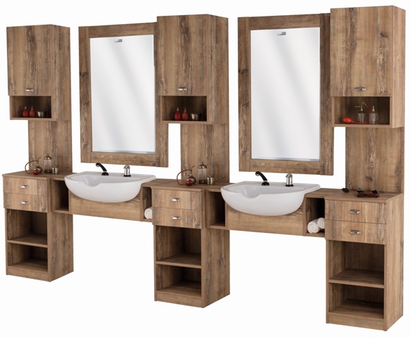 9707B, 9707N, 9707S B, 9707S N — Навесная консоль с отверстиями для хранения инструментов оснащенная интегрированной раковиной (белая/черная).