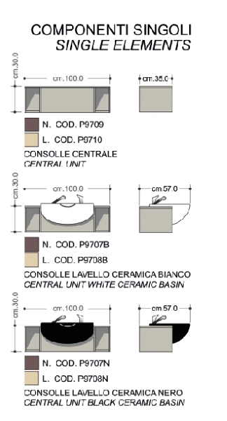 9707S B — CONSOLLE CENTRALE LAV. — 2 шт. Цвет раковины: белый