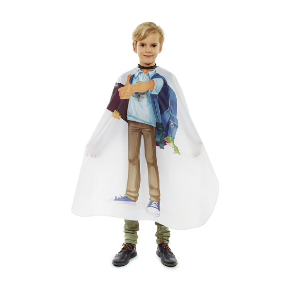 Детский пеньюар. Материал — антистатический водонепроницаемый мягкий полиэстер. Застежка на липучке. Размеры: 95×120 см.