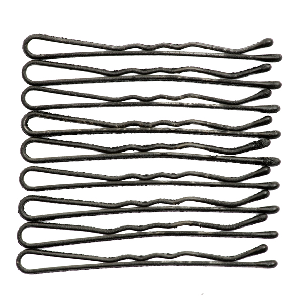 Невидимки для волос 50мм чёрные волнистые 70мм, с «шершавой» поверхностью и шариковыми наконечниками. 9 штук в упаковке.