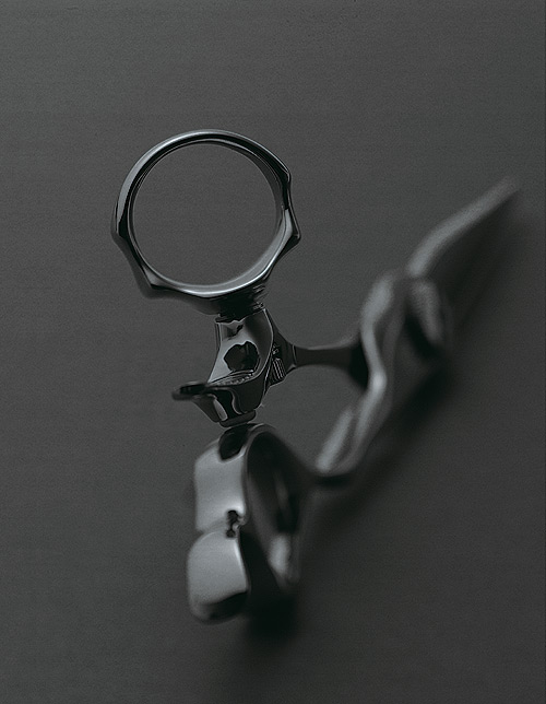 Уникальность модели SWIVEL заключается дополнительной системе «swivel ring» — поворотного кольца для большого пальца. Система крепления, с применением двух подшипников, позволяет кольцу легко и плавно поворачиваться на 360 градусов. Напряжение плечевой группы и кистевых суставов снимается, благодаря комфортному расположению большого пальца. Ножницы послушно следуют за фантазией стилиста при использовании любых техник стижки — даже при самом радикально-вертикальном поинтинге и слайсинге! Впрочем, если вдруг появляется желание поработать ими в «классическом стиле» — можно не использовать кольцо, а положить большой палец под него, и работать как обычно.
