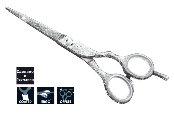 Блестящее покрытие:нанесённое вручную, изысканное покрытие с гладкой, износостойкой и легкочистящейся поверхностью. Защита при аллергии на никель. Offset-дизайн обеспечивает эргономичное расположение ручек и возможность работы без напряжения. Загнутое кольцо для большого пальца обеспечивает очень удобное рабочее положение без мест сдавливания.