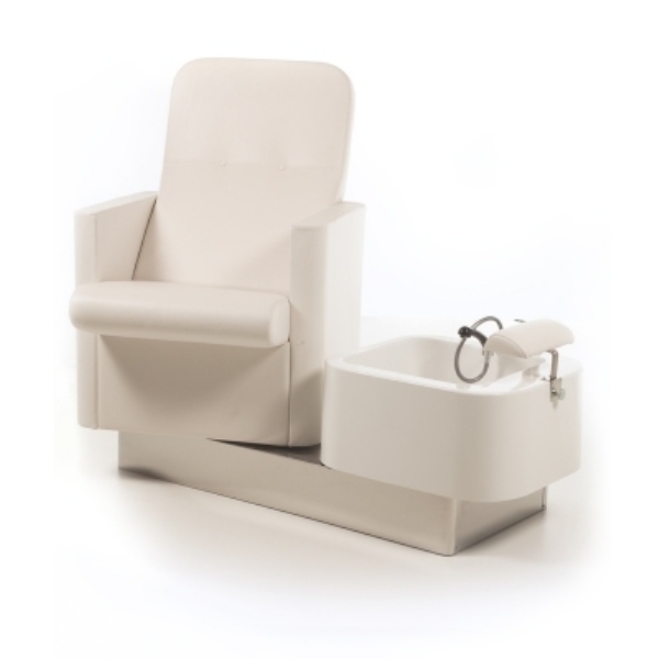 Педикюрная группа HYDROLOUNGE, предназначена для проведения процедуры педикюра. Ванна педикюрной группы оснащена форсунками для гидромассажа JET SYSTEM (беструбчатая система гидромассажных струй). Дизайн ванны позволяет мастеру занять правильное, удобное и эргономическое положение во время работы. Педикюрная группа оснащена удобным вращающимся креслом, нерегулируемой спинкой, комфортными подлокотниками и мягкой опорой для ног, которая может регулироваться по высоте легко адаптируясь к росту клиента. Педикюрная группа комплектуется устойчивым основанием, гидромассажной ванной и комплектом смесителя. Обивка — искусственная кожа высшего качества.