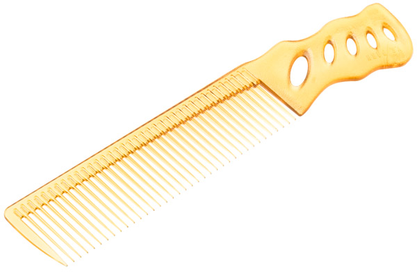 Расческа для промежуточного этапа стрижки коротких волос со скошенными зубцами средней жесткости.